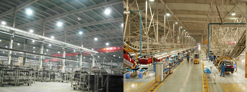 生产车间、物流仓库、车站、机场、高铁站等大厅照明,室内球场运动场照明等。